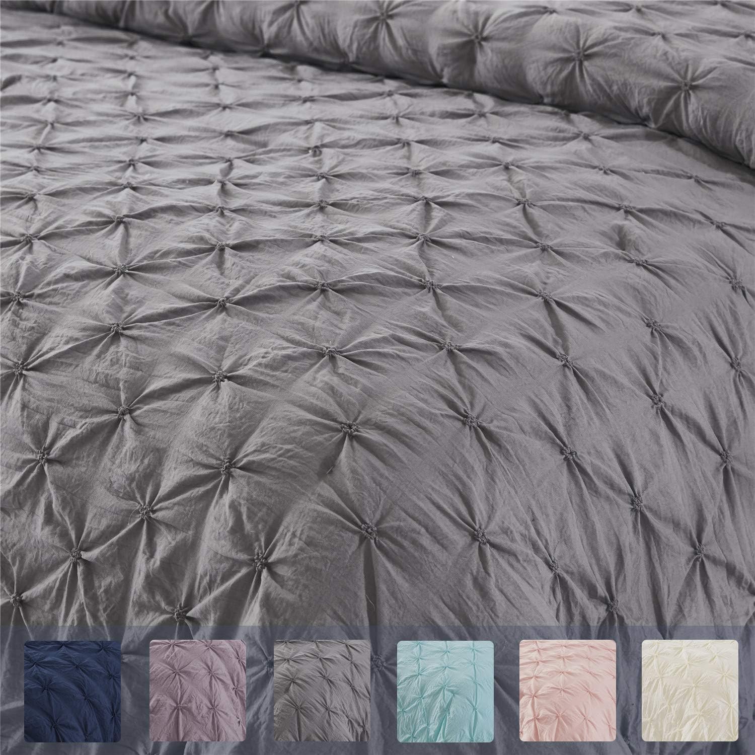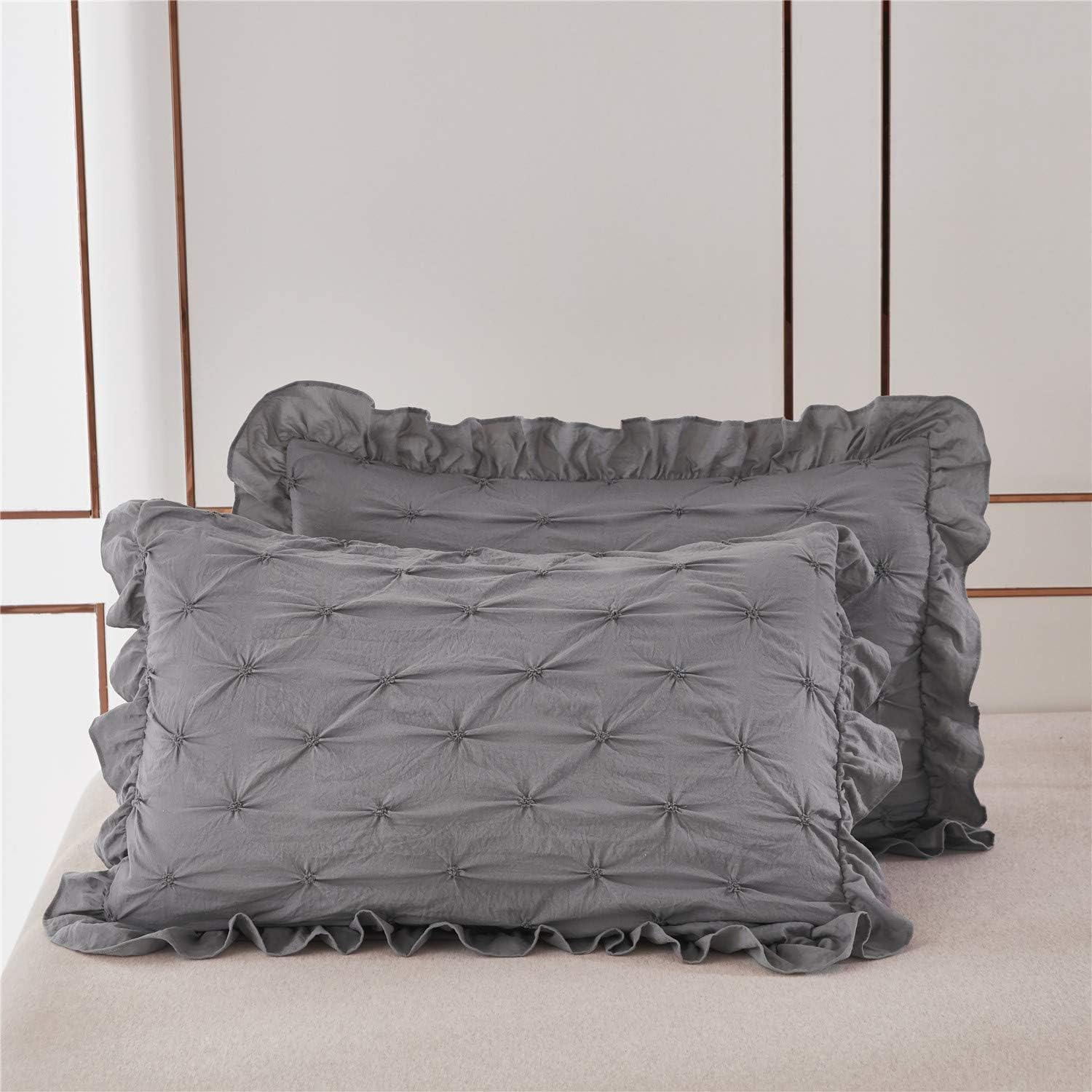 1 edredón Queen de 86 pulgadas de ancho x 90 pulgadas de largo + 3 pulgadas (flecos con volantes) y 2 fundas de almohada de 20 pulgadas de largo x 26 pulgadas de ancho + 2 pulgadas (flecos con volantes). Recomendamos tamaño King para cama queen si te gusta el efecto colcha. Debido a la delicada naturaleza del diseño, estos artículos solo se pueden lavar en seco.